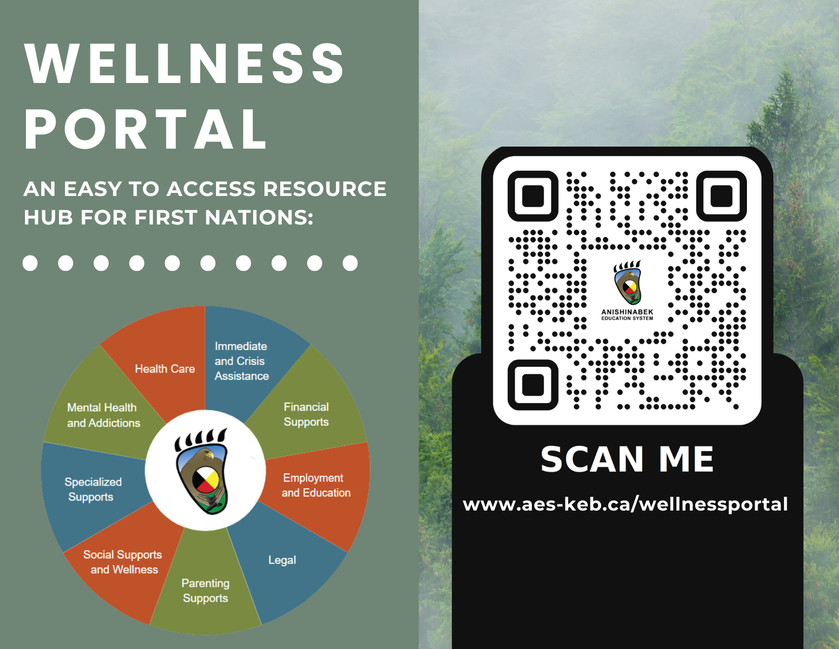 The AES Wellness Portal is an online hub that supports the physical, mental, emotional, and spiritual wellbeing of students, families, and educators across the Anishinabek Education System. It brings together culturally grounded resources, tools, and information to promote balance, connection, and holistic wellness in our communities.